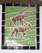 Birch tree relief wall mural. This piece is 30 inches tall and 35 inches wide. The piece is installed directly to the wall of a cozy Alaskan log home. What's New: Carla's Art is Available At: Euphoria in Palmer, Alaska. Euphoria is a shop full of items handmade by Alaskan artists. It is located near the Palmer Visitor's Center. Stop by and check it out! Her garden theme items are also available at Recluse Garden Center on the Palmer Wasilla Highway. Update From the Studio: Carla is developing new designs for her mugs and a series of new glaze combinations for 2004.
